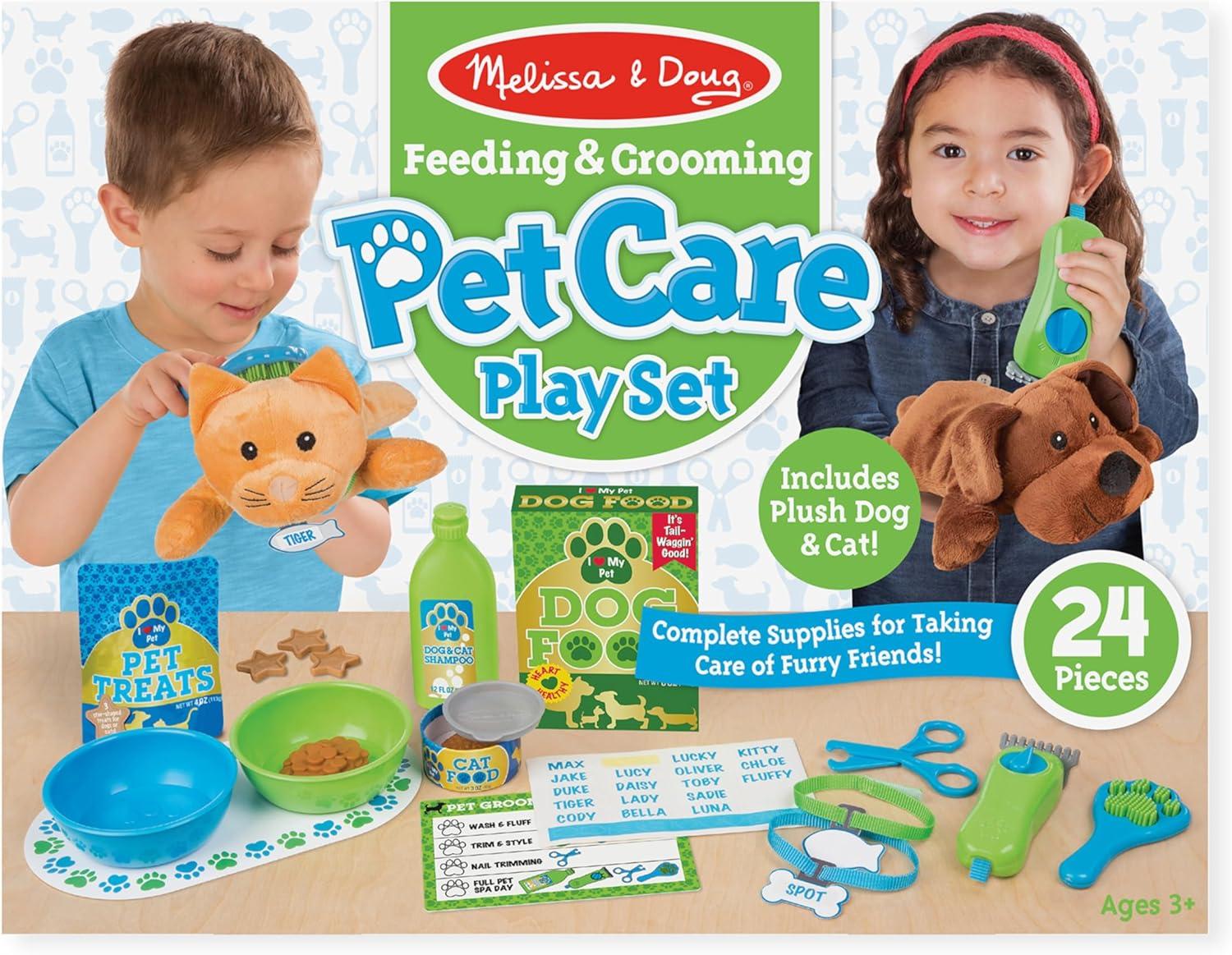 Melissa & Doug Feed & Groom Horse Care Play Set with Plush Stuffed Animal (23 pcs) Pretend Play Horse Plush Toys for Girls and Boys Toddlers Ages 1+(Multi Color)