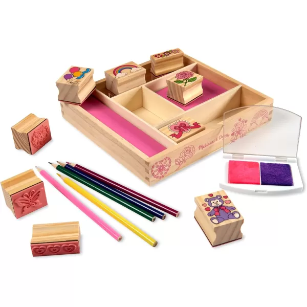 It's fun to bring prehistoric scenes to life with these eight detailed dino stamps and two-color inkpad–then color them in with the five colored pencils. This well-crafted set is conveniently contained in a sturdy wooden box for storage. A tremendous value! This product is certified by the Forest Stewardship Council. FSC certification ensures that products come from responsibly managed forests that provide environmental, social, and economic benefits, and that forests are protected for future generations. Please note that FSC certification applies to new inventory only (FSC C156584)